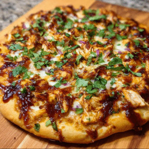 Homemade BBQ Chicken Pizza with Caramelized Onions & Fresh Cilantro