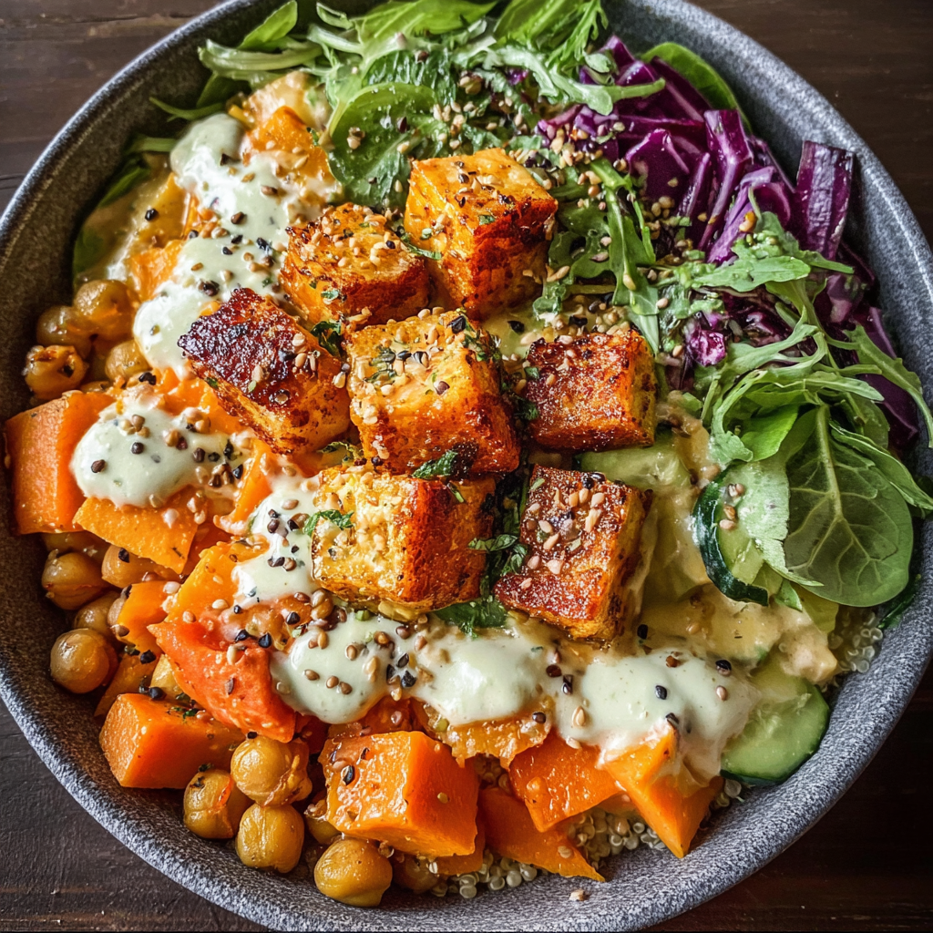 - Can I use other proteins instead of tofu and chickpeas? Yes! Tempeh, grilled chicken, or even lentils can work well here.