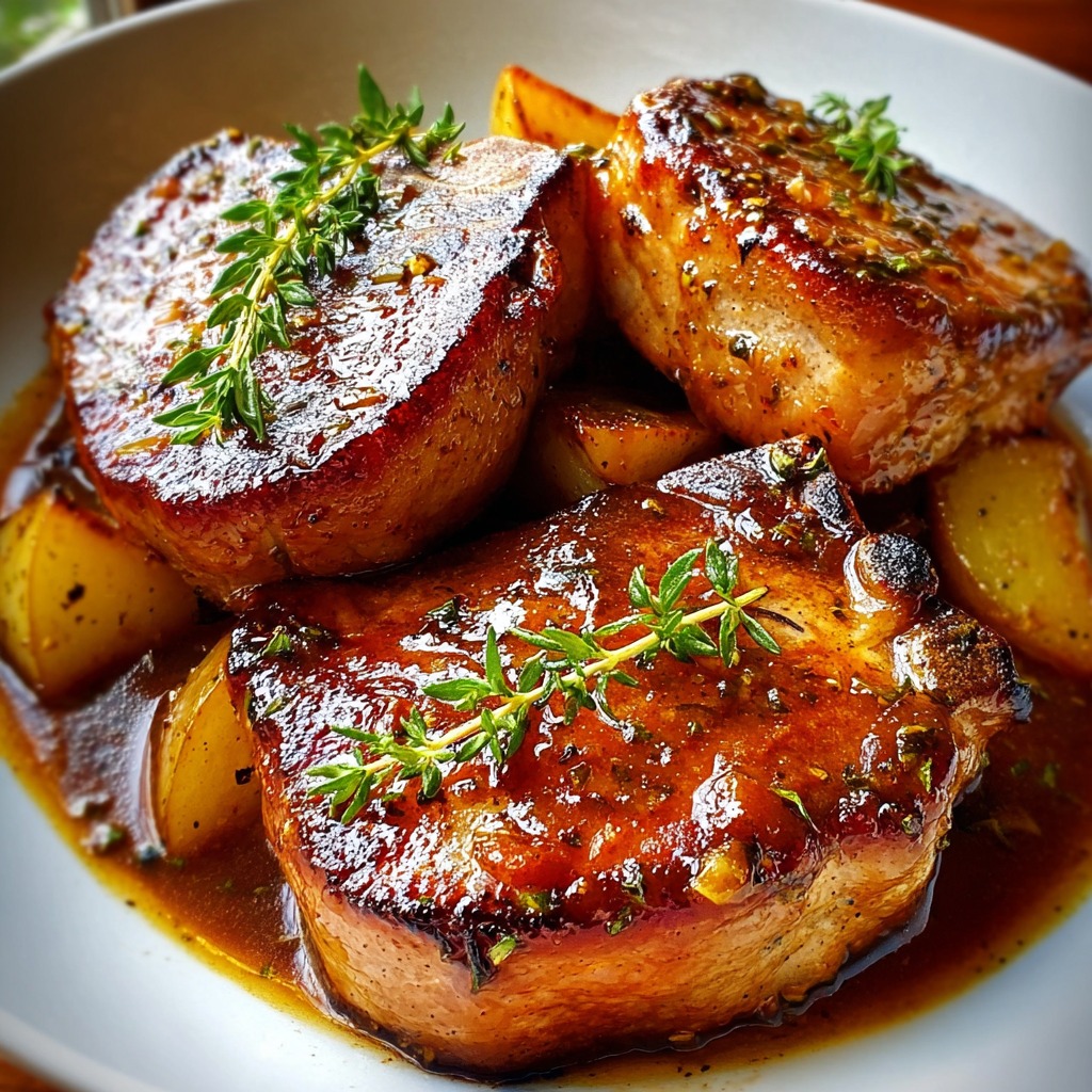 - Garnish and Serve: Once cooked, take the skillet off the heat. Garnish the chops with fresh thyme sprigs and serve them drizzled with the apple butter sauce. It’s perfect paired with mashed potatoes or some steamed veggies!