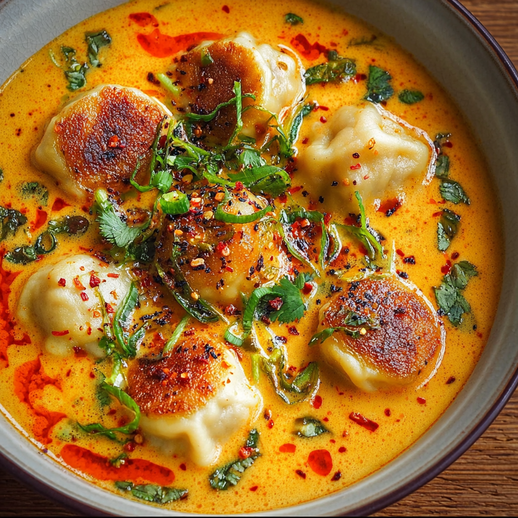 A Comforting Coconut Curry Soup with Crispy Dumplings – My New Favorite!