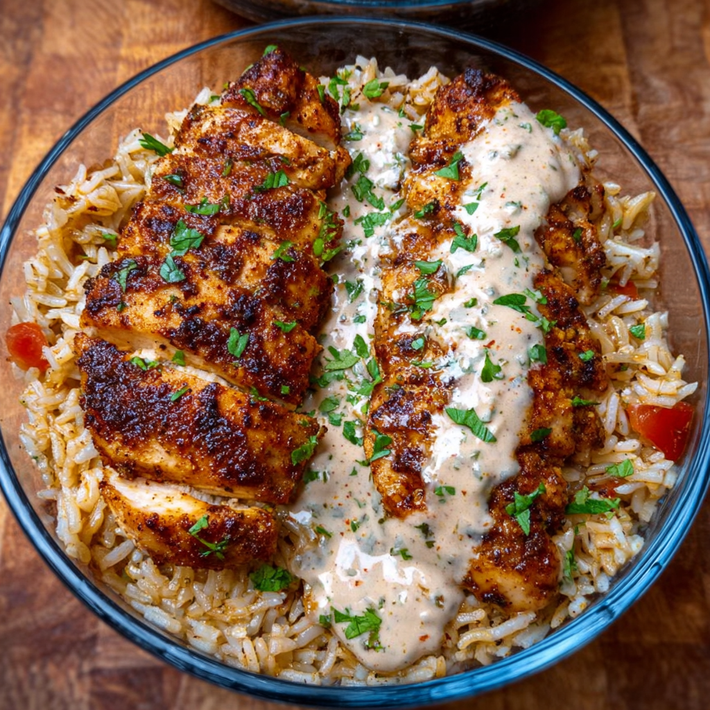 - Add the Sauce: Drizzle that creamy sauce generously over the chicken and rice to bring it all together. This is where the magic happens!