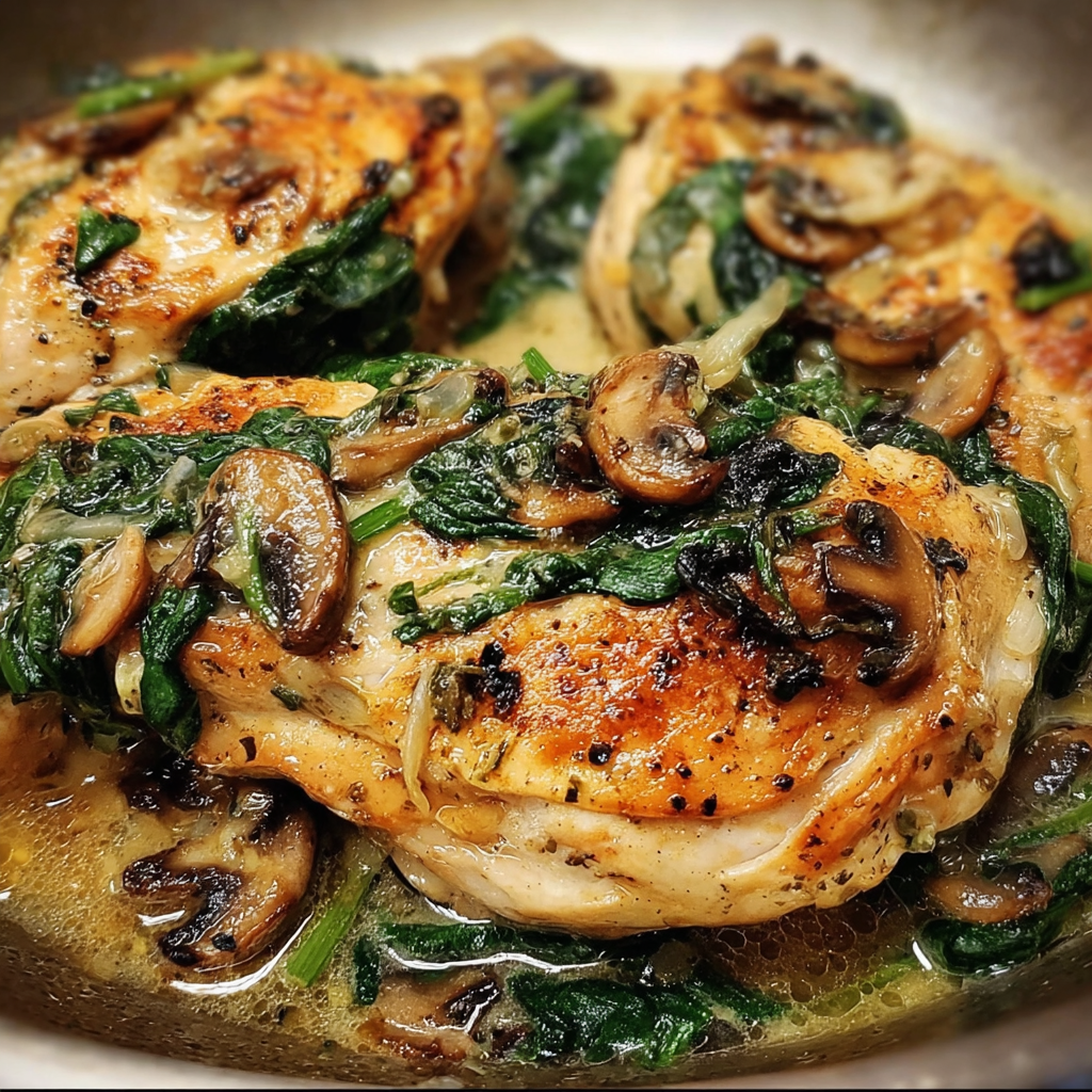 Deliciously Creamy Chicken with Spinach and Mushrooms