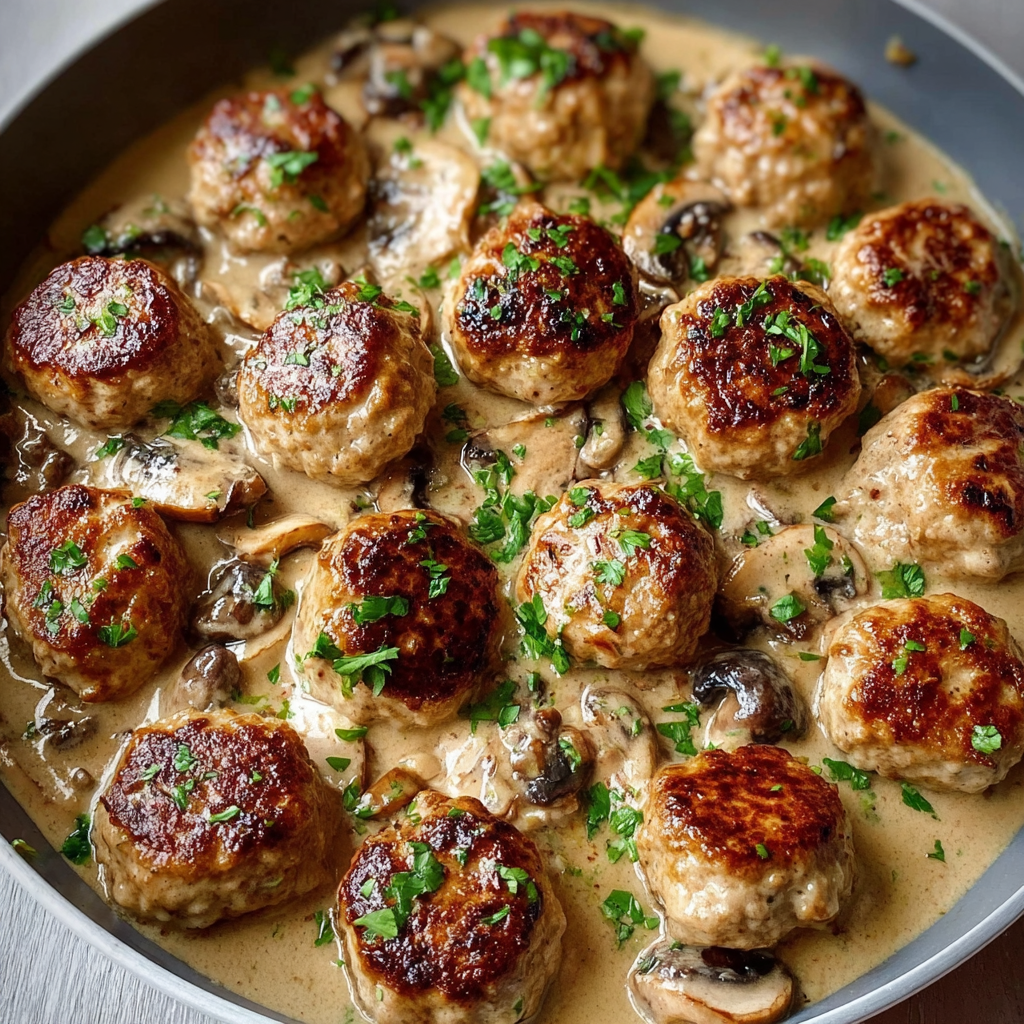 Easy Creamy Mushroom Chicken Meatballs Recipe