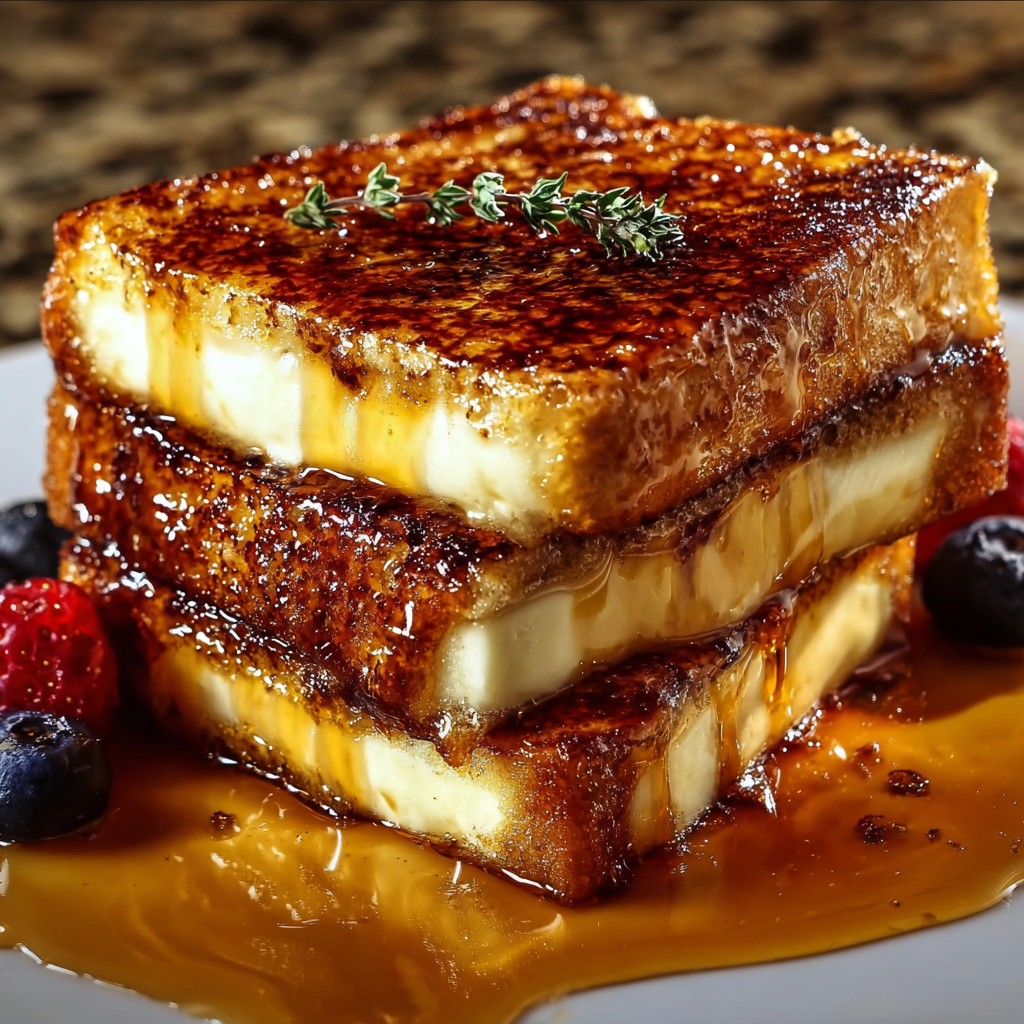 If you’re anything like me, breakfast is one of the best parts of the day—especially when it feels a little special. I want to share a French toast recipe that’s not just your everyday morning toast. It’s got this golden caramelized sugar topping, kind of like a crème brûlée, and it’s made with soft brioche or challah bread for that rich, buttery taste. Trust me, it’s a little breakfast upgrade that feels like a treat but is sooo easy to make. Plus, the fresh berries and a sprig of thyme make it fancy but fresh. Ready to dive in? Let’s go!