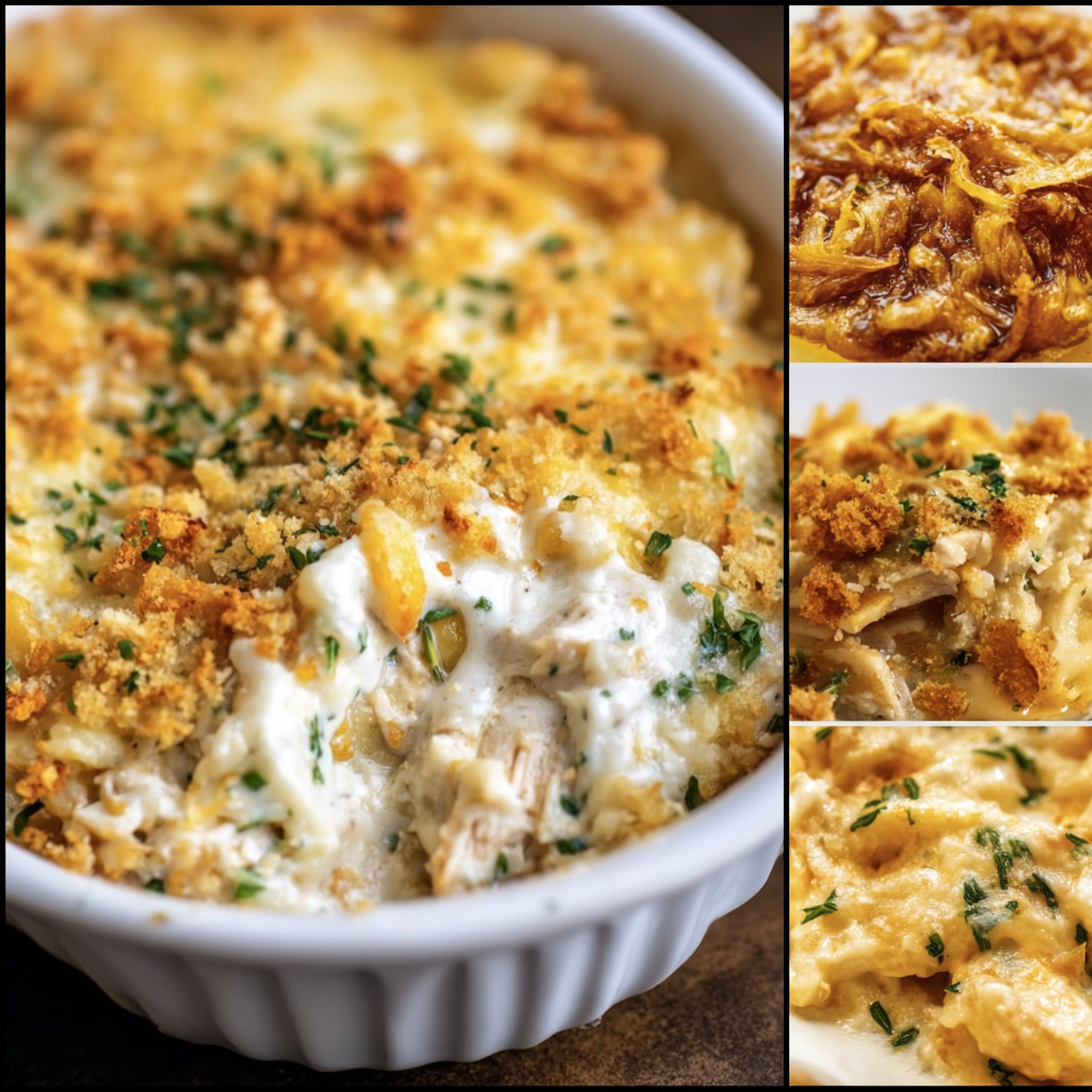 This meal is not only delicious but so practical. You can use leftover cooked chicken or quickly cook chicken breasts or thighs to get started. The creamy base with condensed soup adds that rich flavor without needing tons of ingredients. And the cheese? Well, you can’t go wrong there! It melts beautifully and adds a gooey, indulgent touch. I also love how the crispy topping contrasts nicely with the creamy chicken underneath. Paired with roasted potatoes, you get a full meal that’s hearty, well-balanced, and perfect to share with your family or friends.