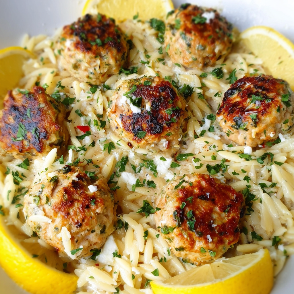 Easy Greek Chicken Meatballs with Lemon Orzo Recipe