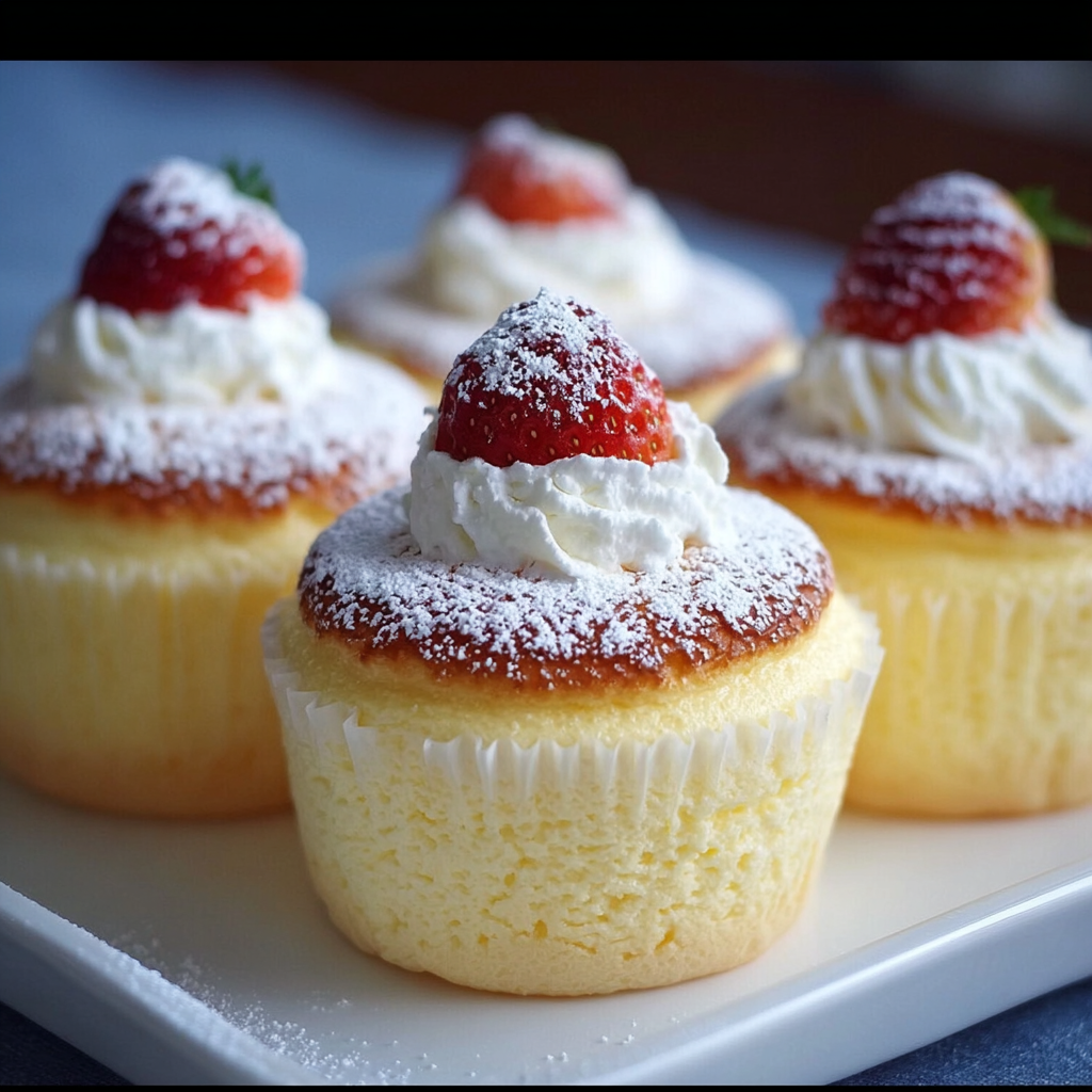 - While your cupcakes cool, whip up that heavy cream until stiff peaks form. Pipe or dollop the whipped cream on top of each cupcake, add a halved strawberry, and sprinkle with powdered sugar for that fancy touch.