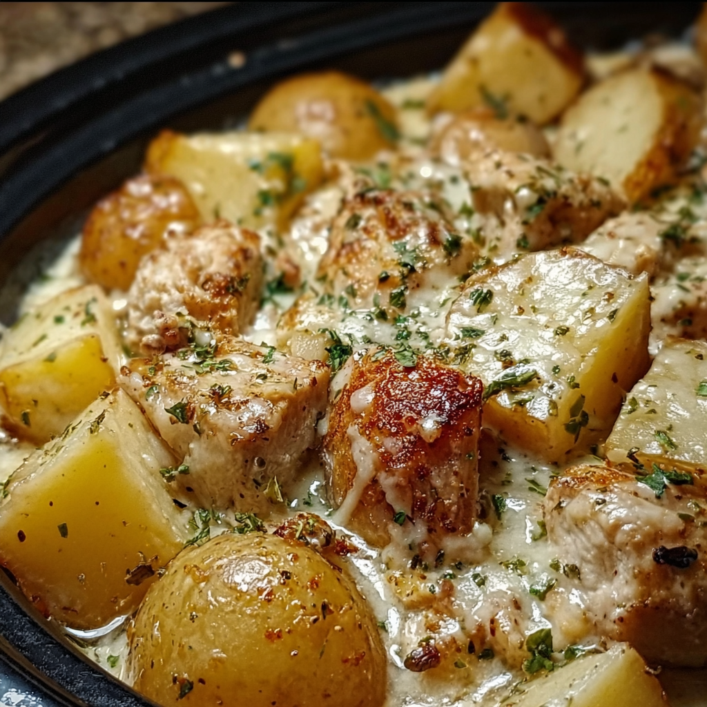 - Pour that creamy mixture all over the chicken and potatoes. Make sure everything gets coated nicely; it will create a rich and comforting sauce as it cooks.