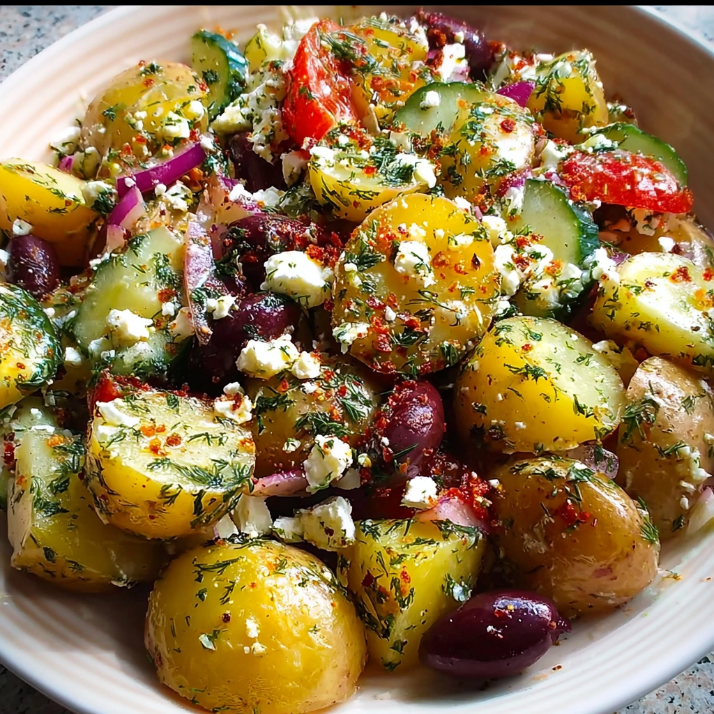 Hey there! If you love fresh, tangy, and savory flavors all mingling together in one dish, you’re going to adore this Greek-style potato salad. I first tried something like this during a trip to the Mediterranean, and it immediately became a go-to recipe for summer cookouts and quick dinners. The combination of tender baby potatoes, salty feta, briny Kalamata olives, and fresh dill, all brightened with lemon and garlic, makes this salad feel both comforting and refreshing.