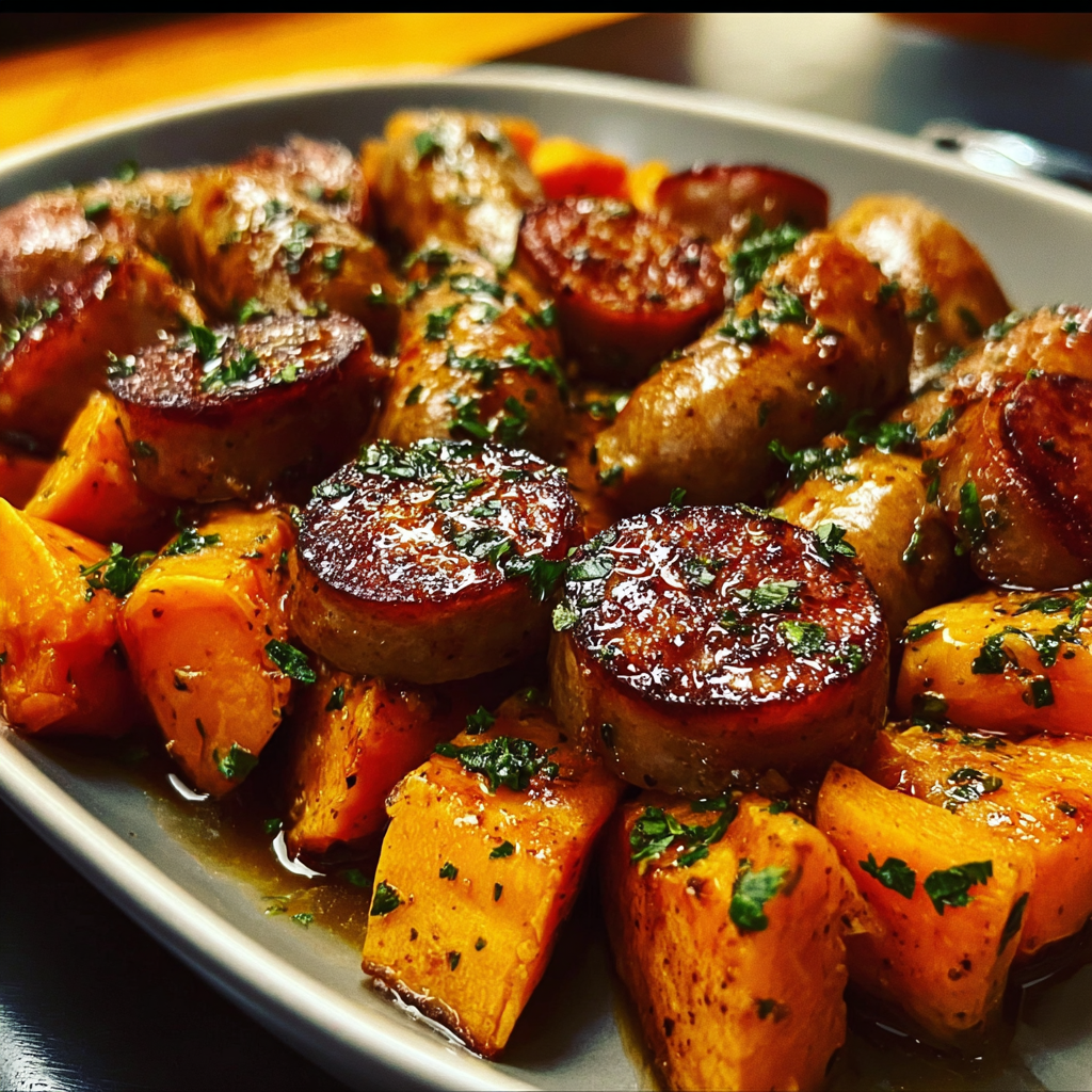 Sweet & Savory Honey Garlic Sausage with Sweet Potatoes