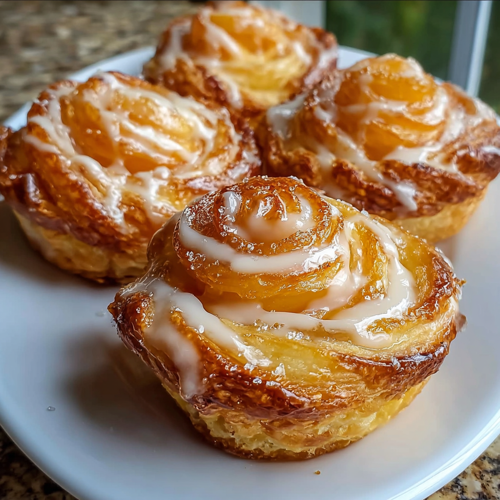 Not only do these cruffins look gorgeous with their spiral design, but they also taste heavenly. The juicy peaches combined with a crunchy topping, and the sweet glaze makes them hard to resist. Plus, the puff pastry takes the work out of it, giving you that flaky texture without hours in the kitchen. What’s not to love?