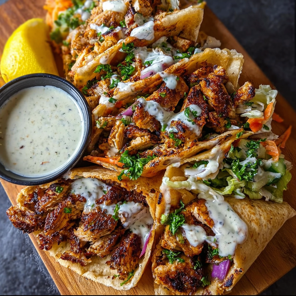 Adding fresh veggies like lettuce, tomatoes, and parsley brings in fiber and important vitamins, making this a balanced and satisfying meal. And if you go for the yogurt garlic sauce, you’re also adding probiotics that are good for your digestion. See? Eating well can be delicious too!