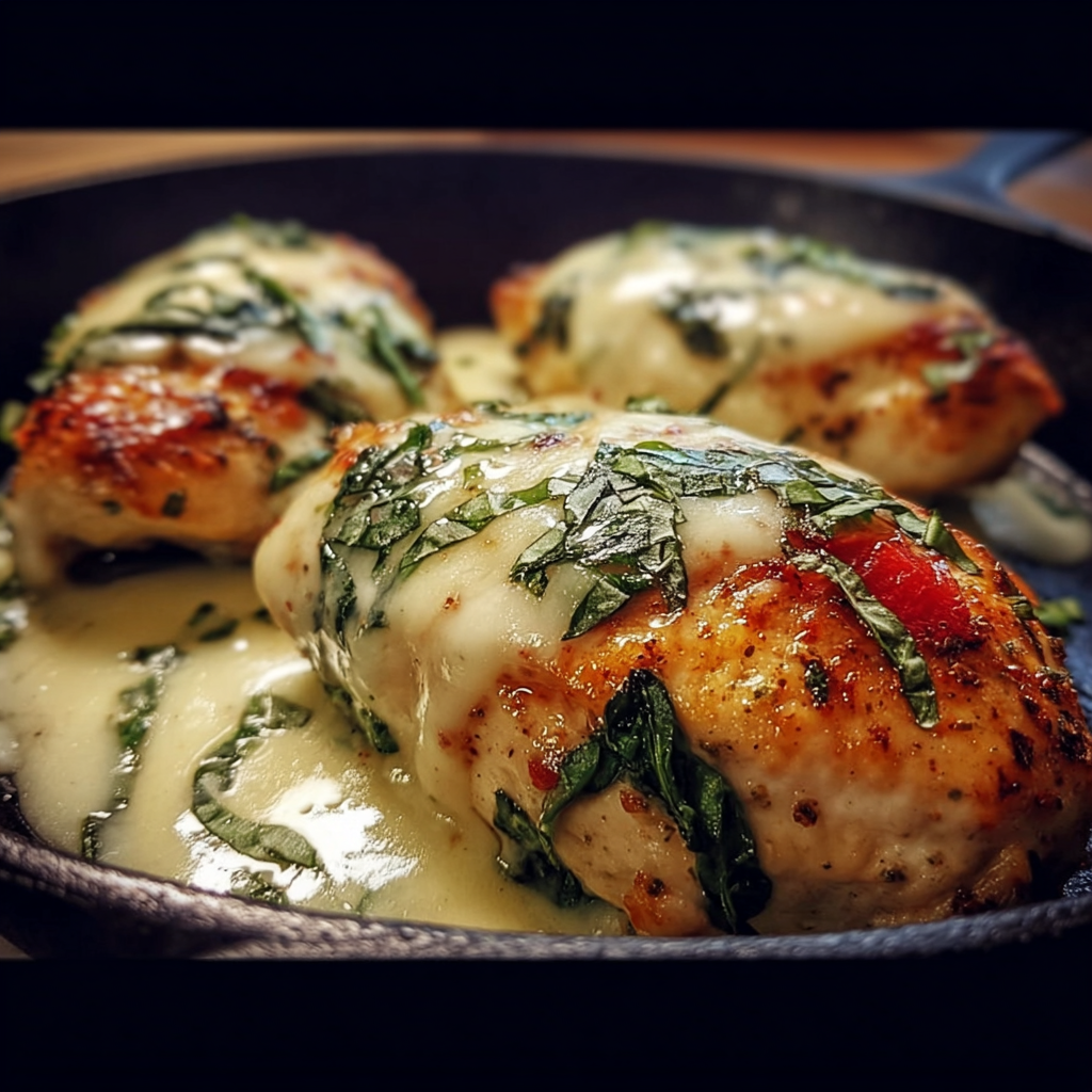 - Return the seared chicken breasts to the skillet, spooning that luscious cream sauce over them. It’s about to get gooey!