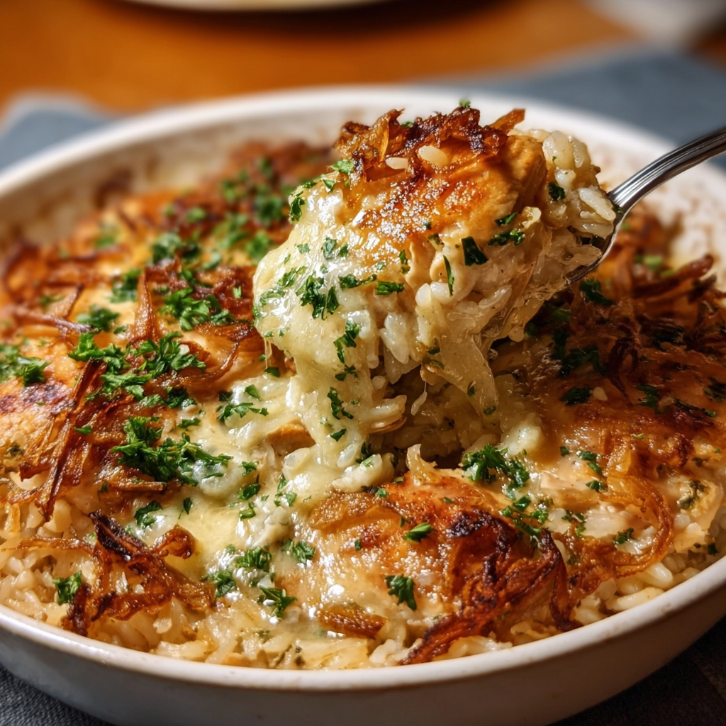 Welcome to a Cozy French Onion Chicken and Rice Experience