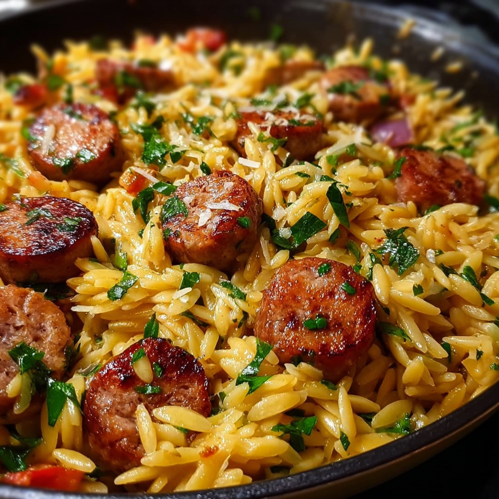 One-Pot Garlic Butter Sausage and Orzo Delight Recipe