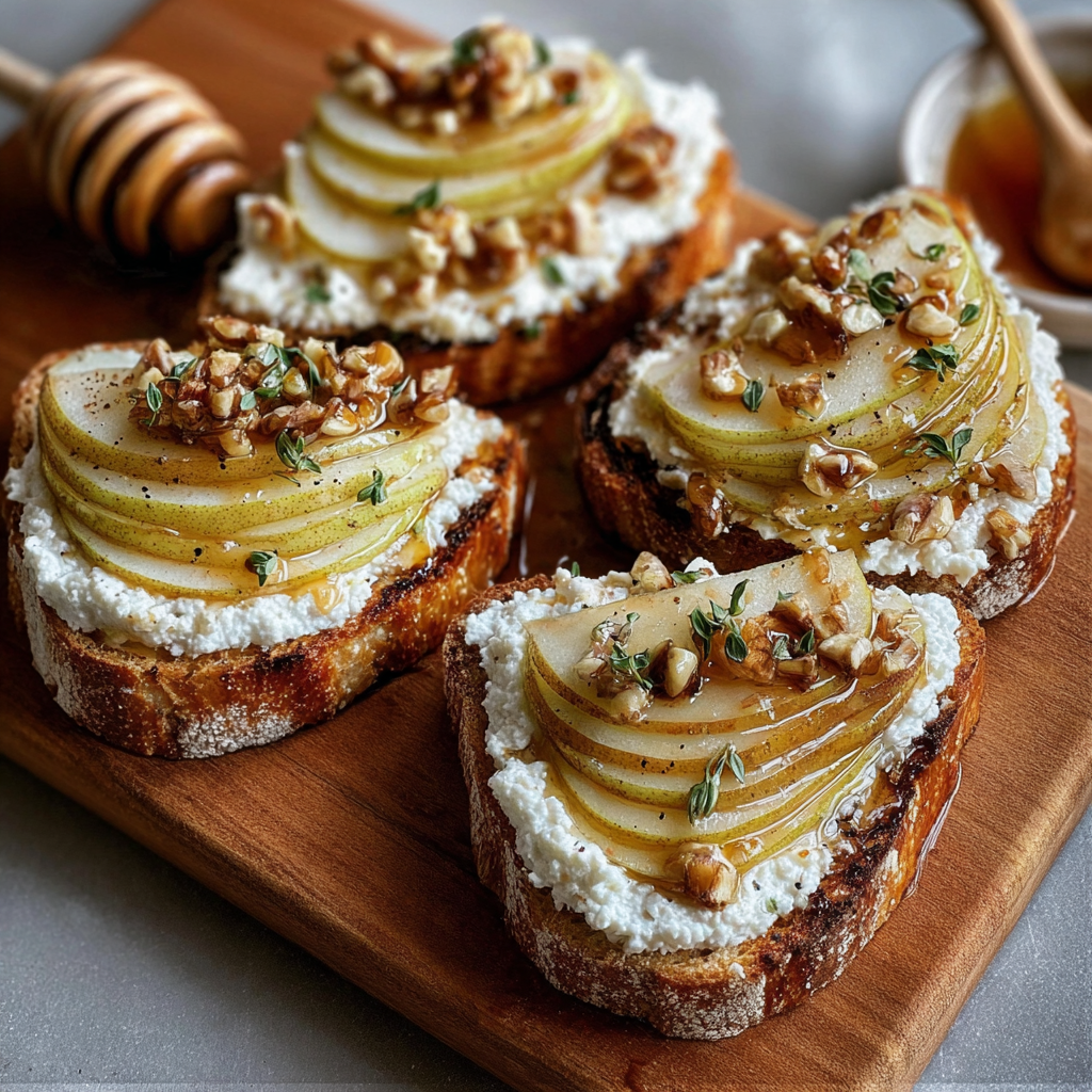 So, what do you think? This ricotta, pear, and walnut toast is one of those simple recipes that feels like a treat every single time I make it. I hope you enjoy trying it out as much as I do! If you make it, snap a photo and share it with me on Pinterest—I’d love to see your beautiful creations and hear all about how you made it your own.