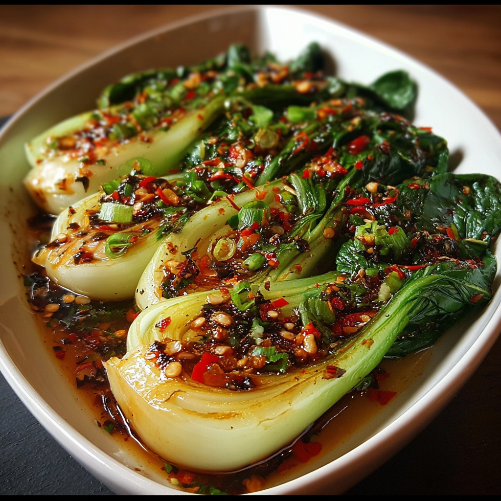 The magic of this recipe is really in the ginger, garlic, and chili sauce poured over the bok choy — bright, spicy, and aromatic. I love how the sesame oil adds a rich, nutty hint that rounds out the flavors beautifully. If you want a dish that wakes up your taste buds but still feels fresh and light, this is it.
