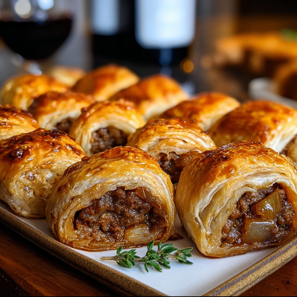 Delicious Sausage and Caramelized Onion Puff Pastry Rolls Recipe
