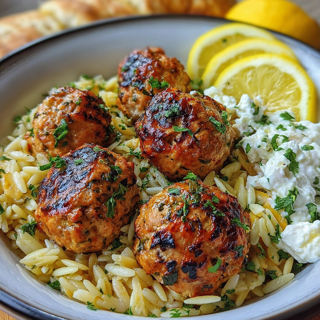 Welcome to My Cozy Kitchen: Greek-Inspired Chicken Meatballs with Lemon Orzo
