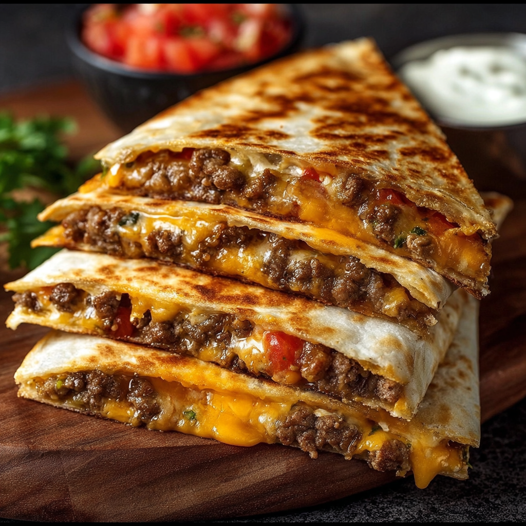 One of the great things about quesadillas is how versatile they are, but they can also pack in some nutritional benefits! Ground beef is an excellent source of protein, which is vital for muscle health and keeping you feeling full. Adding in vegetables like tomatoes or bell peppers not only boosts the flavor but also adds vitamins and minerals, like Vitamin C. And, of course, we can’t forget about the calcium from the cheese, which is essential for healthy bones. So, enjoy this cheesy treat knowing that it has some nutritious perks too!