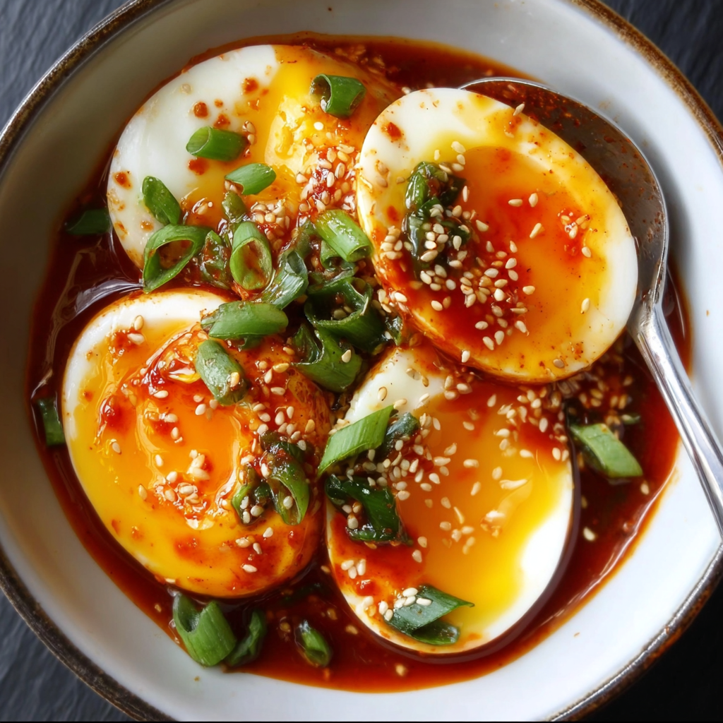 - Arrange the halved eggs in a shallow serving bowl and pour that delicious gochujang sauce over them. Make sure each egg is well-coated and partially submerged in the sauce to absorb those wonderful flavors.