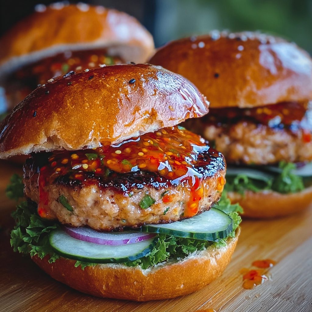 - Assemble your burgers with your favorite toppings and a drizzle of extra sweet chili sauce, if you like. Serve with a side salad or sweet potato fries, and enjoy!