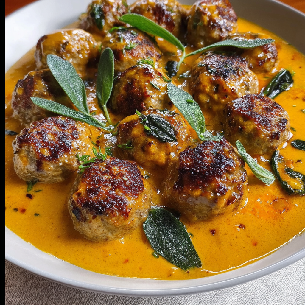 - Combine Meatballs and Sauce: Add the seared meatballs back into the skillet, making sure they’re well-coated with that luscious pumpkin sage sauce. Let them simmer in the sauce for an extra 5-7 minutes so all those fabulous flavors meld together beautifully.